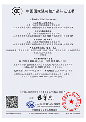 公司通過了CCC認證、節能認證、環境標志產品認證、公安部安全與警用電子產品質量檢測中心檢測報告(CNAS認證) 、ISO9001、14001、18001、CE、CB、FCC、ROHS、抗震防塵等多項資質認證,并入選《政采節能產品清單》。